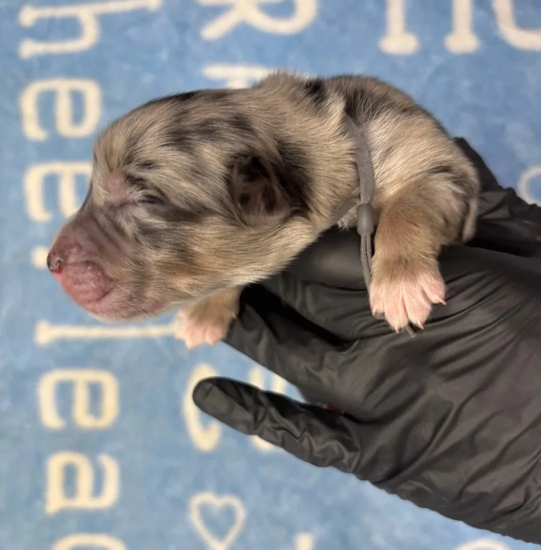 Every Good Karma’s Aussie pup is raised right in our home, surrounded by love, early socialization, and plenty of attention. From day one, we focus on giving them the best start — health-tested parents, age-appropriate stimulation, and lots of snuggles.